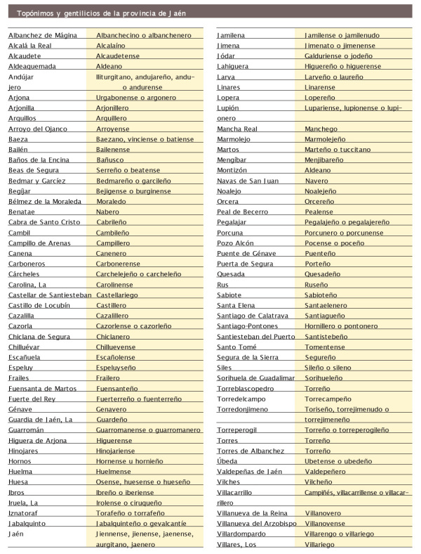 Toponimos y gentilicios
