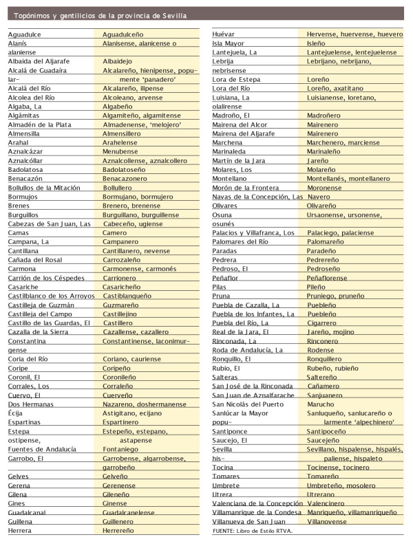 Toponimos y gentilicios
