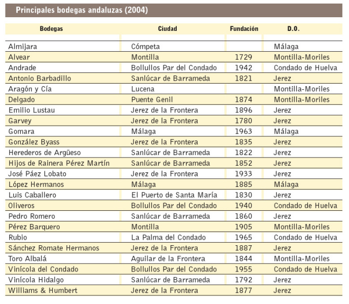 Principales bodegas andaluzas