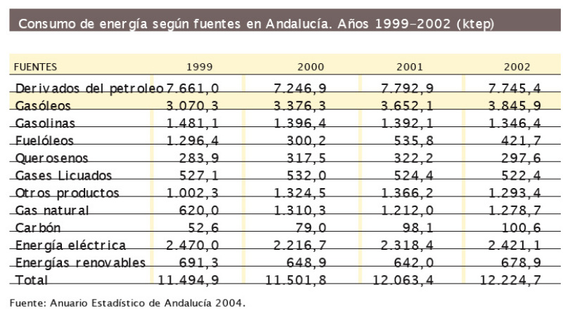 Consumo energia Andalucia